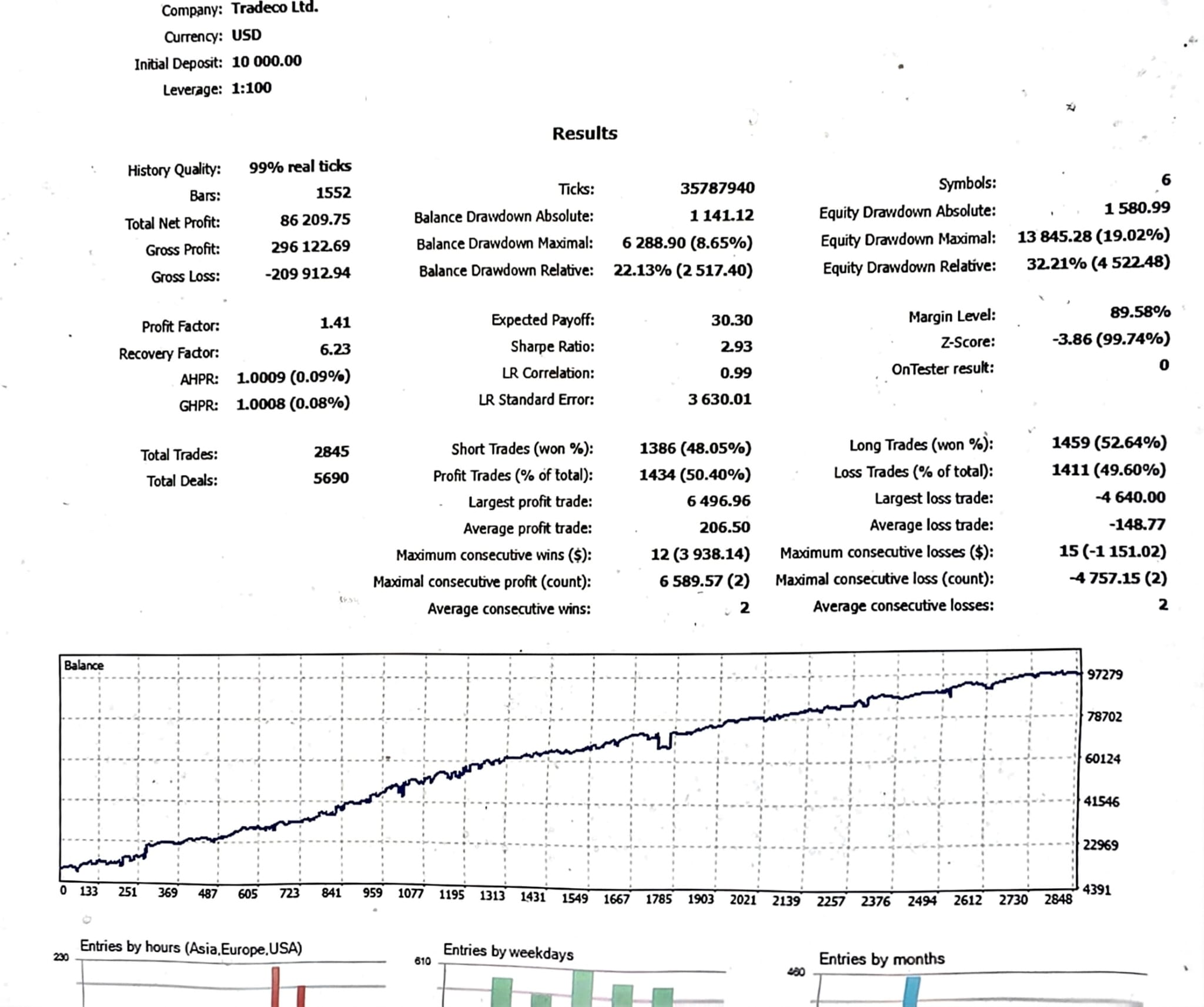 See what the EA did with $10,000, 2,845 trades, and 12 months of MT5 data.